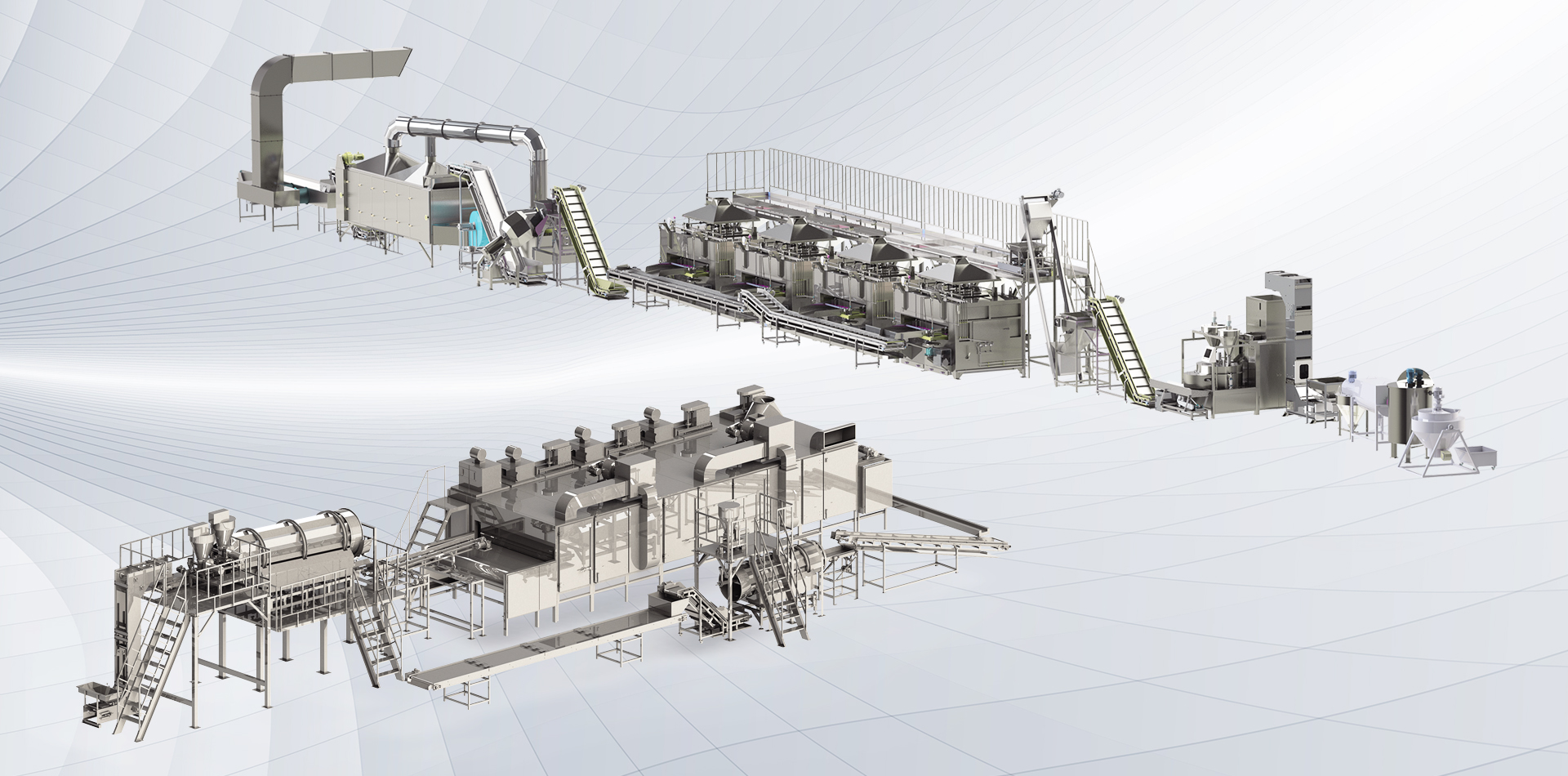 該生產(chǎn)線廣泛應(yīng)用于花生、青豆、夏果、腰果等堅(jiān)果仁裹衣烘烤加工。自動化生產(chǎn),連續(xù)進(jìn)出,真正實(shí)現(xiàn)一人多機(jī),一鍵式操作,減少了人工強(qiáng)度及技術(shù)依賴性,保證產(chǎn)品質(zhì)量穩(wěn)定性。